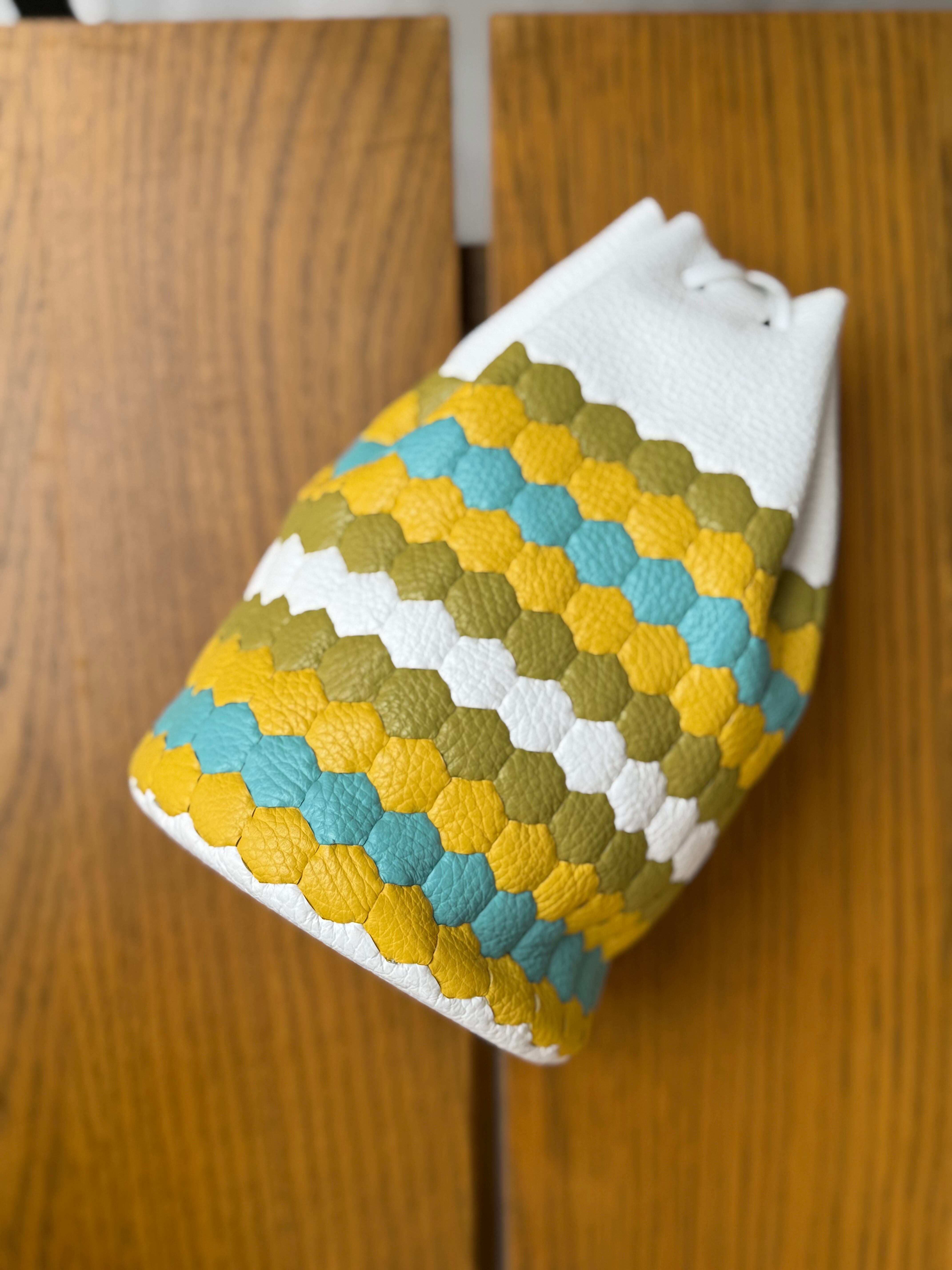 贅沢なイタリアレザーを使用したこの巾着バッグは、毎日のコーディネートに華を添えるアイテムです。マチ幅13センチ、縦20センチのコンパクトなサイズ感ながら、必需品をしっかりと収納できる実用性があり、さまざまなシーンでお使いいただけます。国内生産で、スタッフがひとつひとつ丁寧に手作りしていますので、温もりを感じることができます。